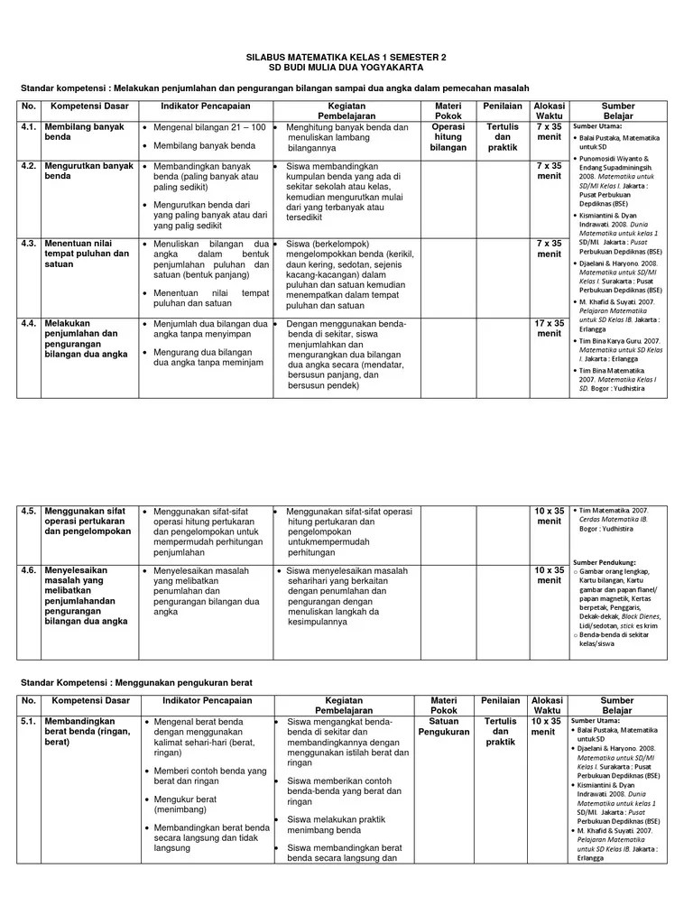Baiklah bloggersiana sudahi dulu penulisan artikel pada kesempatan yang baik ini, semoga apa yang tersaji terkait silabus matematika kelas 4 semester 1 k13 bisa meringankan sedikit beban kerja bapak/ibu perihal penyediaan berkas administratif. silabus tematik kelas 1 sd semester 1 kurikulum 2013 revisi 2017 gurusd.id silabus adalah rencana pembelajaran dalam suatu kelompok mata pelajaran/tema tertentu yang mencakup standar kompetensi, kompetensi dasar, materi pokok/pembelajaran, kegiatan pembelajaran, indikator, penilaian, alokasi waktu, dan sumber/bahan/alat belajar. Silahkan kunjungi juga berkas terkait. Download silabus matematika sd kelas 5 semester 1 dan 2 kurikulum 2013 silabus k13 matematika sd kelas 5 semester 1 dan 2 tahun 2020 ini merupakan versi terbaru pada sekolah dasar (sd), dalam format word sehingga memudahkan dalam mengedit dan menyesuaikan. silabus tunagrahita kelas 9 tema 3 subtema 1.